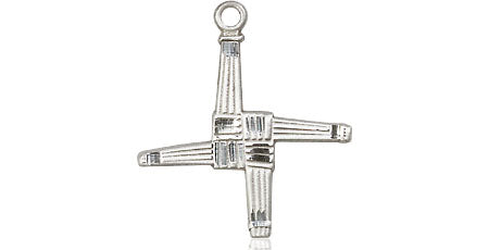 Sterling silver St. Brigid Cross medal on an 18" silver tone light Figaro style chain.